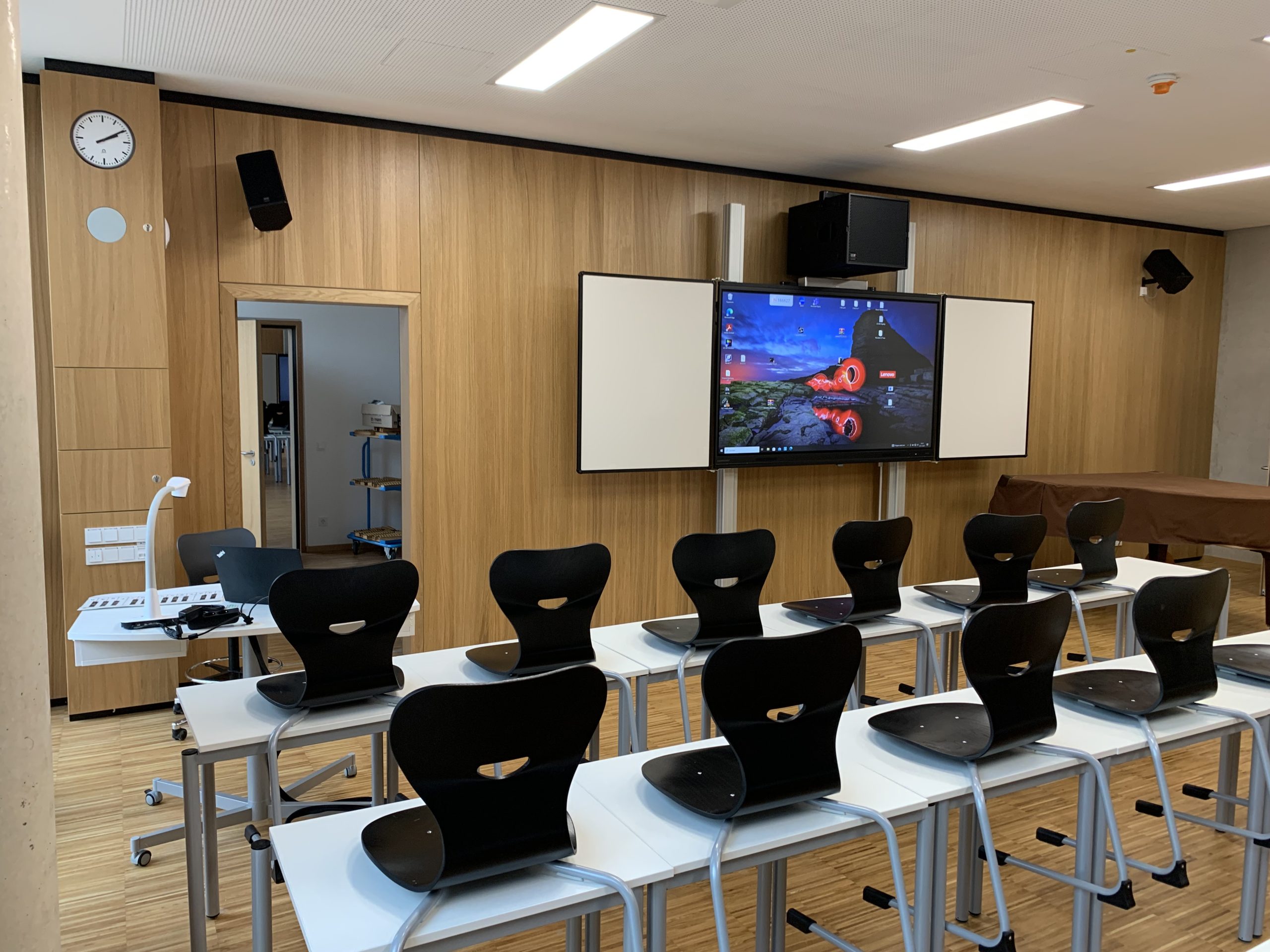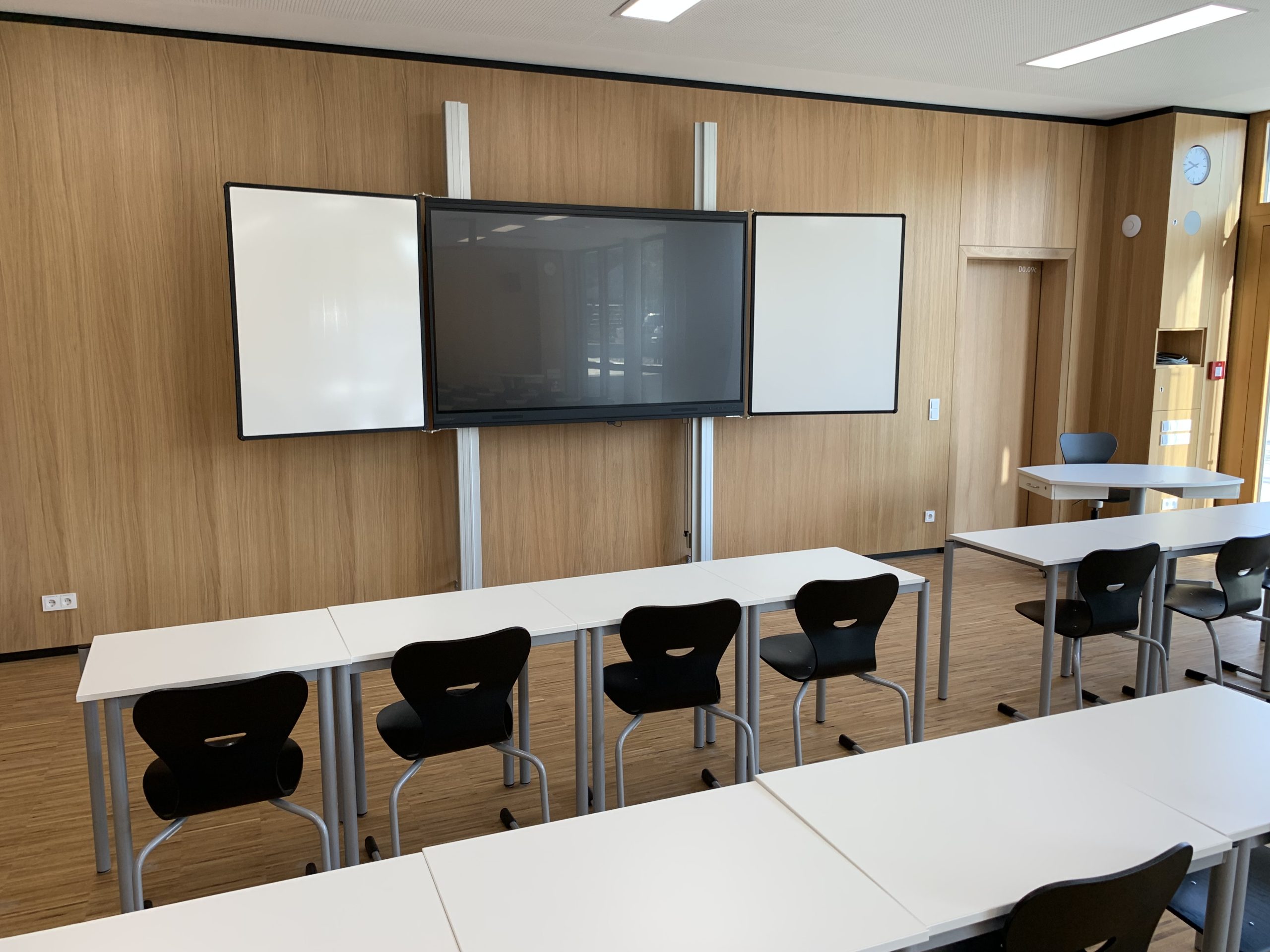 Für das Leibniz Gymnasium in Altdorf haben wir erfolgreich 50 Klassenzimmer in moderne digitale Lernumgebungen umgewandelt. Dabei wurden 86-Zoll-Touchdisplays von Clevertouch verbaut. Die Pylonensysteme sowie die Tafeln stammen von Conen Systems, während die Signalverarbeitung von Purelink und die Dokumentenkameras von Optoma geliefert wurden. Um den individuellen Bedürfnissen der Räume gerecht zu werden, wurden verschiedene Tafelsysteme installiert, darunter Klapptafeln, separate Tafelsysteme neben dem Touchdisplay oder Tafeln mit Slideback-Funktion, die hinter dem Display verschwinden.